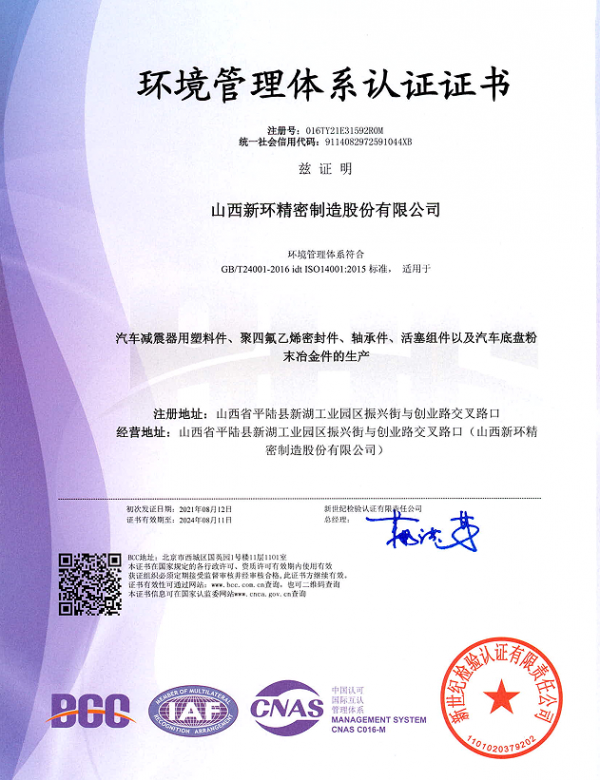 山西新環(huán)精密制造股份有限公司創(chuàng)建于1992年,是以研發(fā)、生產(chǎn)、銷(xiāo)售粉末冶金類(lèi)、工程塑料類(lèi)、橡膠制品類(lèi)、氟塑類(lèi)產(chǎn)品為主的高新技術(shù)企業(yè)。位于交通發(fā)達(dá)的山西省平陸縣城,距離三門(mén)峽市6 km,毗鄰隴海線(xiàn),高鐵直達(dá)北京、上海、成都均為5小時(shí)左右,到達(dá)鄭州、西安皆為1小時(shí),距離運(yùn)城市機(jī)場(chǎng)35km。旗下子公司有:山西新環(huán)粉末冶金有限公司、山西新環(huán)科技有限公司、寧波新環(huán)氟塑料制品有限公司、寧波新環(huán)氟塑料制品有限公司軸業(yè)分公司、新勝達(dá)氟塑制品有限公司。現(xiàn)有高、精、尖設(shè)備120余臺(tái)套,固定資產(chǎn)總額1.8億元,年銷(xiāo)售額2.6億元。